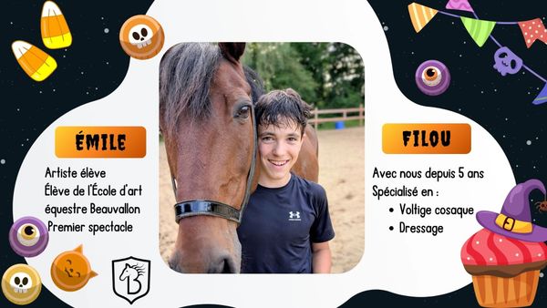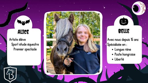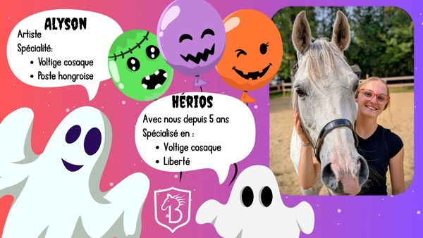 Ce spectacle animé par nos personnages et leurs montures vous plongera dans l’ambiance de l’Halloween dans une histoire de Haute en couleur!